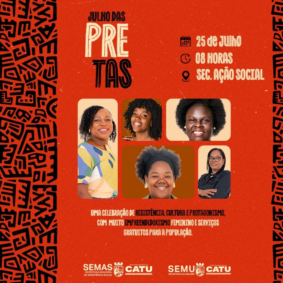 Na manhã do próximo dia 25 de julho, a sede da Secretaria Municipal de Ação Social de Catu será palco de uma grande celebração de força, ancestralidade e protagonismo feminino com o evento “Julho das Pretas”. A iniciativa marca uma data de grande importância para o reconhecimento da luta e da resistência das mulheres negras, promovendo um espaço de acolhimento, valorização e empoderamento.