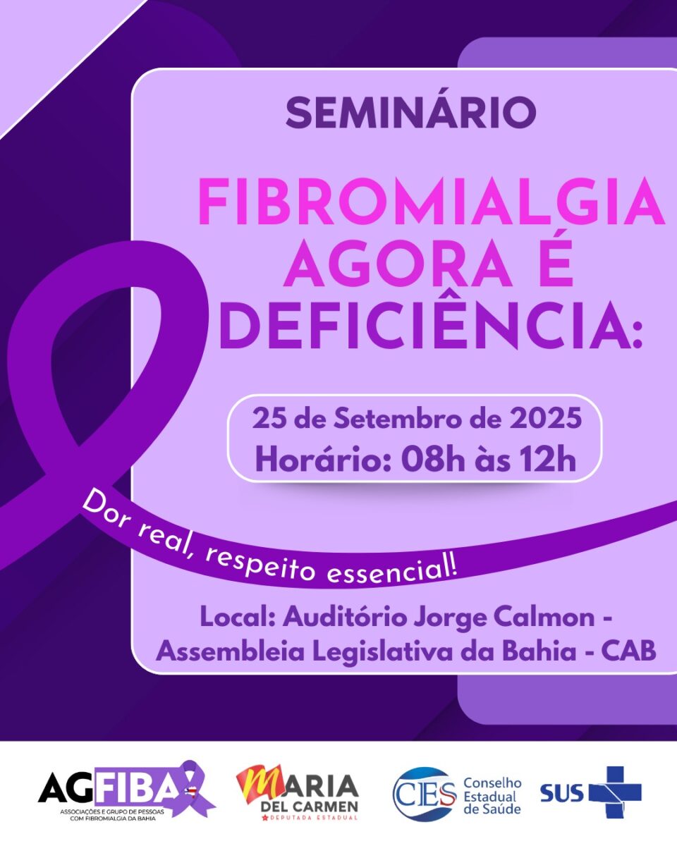 A atividade também tem o apoio da Deputada Estadual, Maria Del Carmen, autora das leis 14.364/21, que instituiu o 12 de maio como Dia Estadual de Conscientização sobre a Fibromialgia, e 14.886/2025, que criou o Programa Estadual de Cuidados e reconheceu a fibromialgia como deficiência na Bahia.–