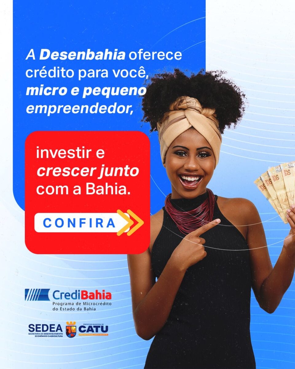 A Prefeitura de Catu, por meio da Secretaria de Desenvolvimento Econômico e Agricultura (SEDEA), em parceria com a Desenbahia, está disponibilizando o programa CrediBahia, que oferece linhas de crédito para micro e pequenos empreendedores formais e informais do município.