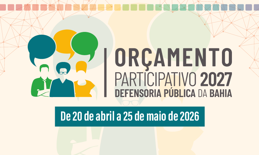 A Defensoria Pública da Bahia inicia nesta segunda-feira (20) a consulta pública do Orçamento Participativo para 2027. Cidadãos e cidadãs baianos(as) poderão contribuir ativamente para a construção do orçamento da instituição através de um questionário, que ficará aberto até o dia 25 de maio.