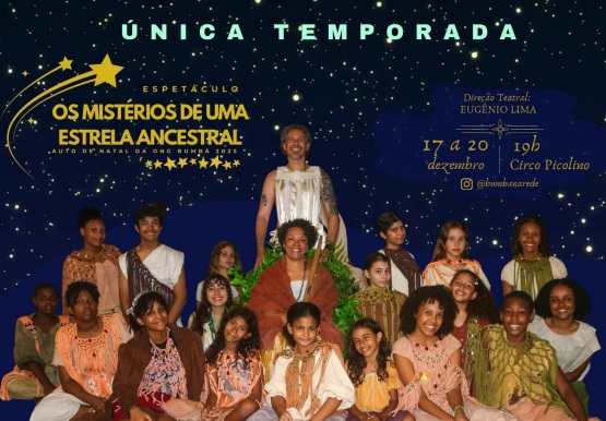 Nos dias 17 a 20 de dezembro, às 19h, no Circo Picolino, acontece a temporada única do Espetáculo Os Mistérios de Uma Estrela Ancestral – Auto de Natal da ONG Bumbá 2025.