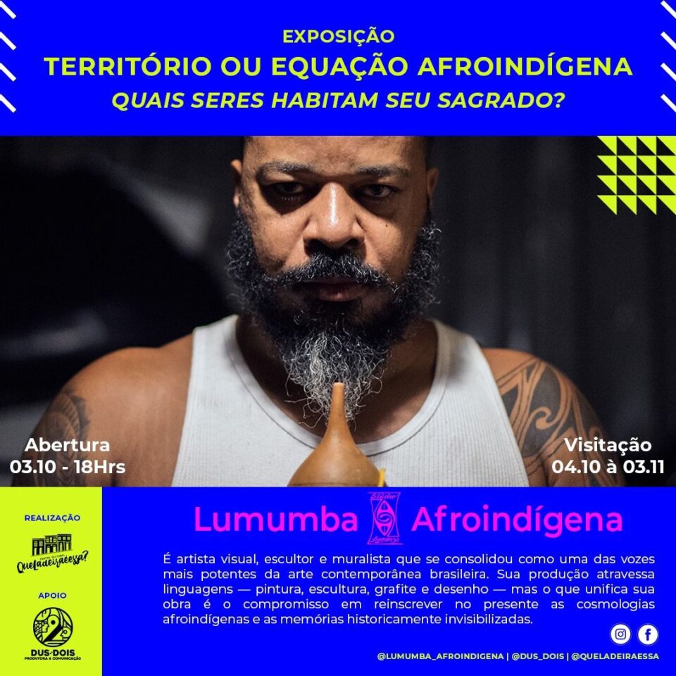 Salvador será palco de uma experiência artística inédita com a abertura da exposição “Território ou Equação Afroindígena”, do artista visual Lumumba Afroindígena, nesta sexta-feira (3), às 18h, na Sala de Artes Zero7, localizada na sede do Centro Cultural Que Ladeira é Essa?, na histórica Ladeira da Preguiça.