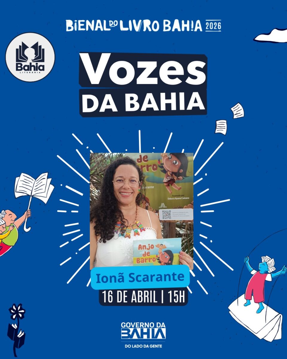 O projeto Vozes da Bahia reúne 84 escritoras e escritores com o objetivo de dar visibilidade à cena literária baiana, aproximando-os do público, em encontros cheios de troca e inspiração, além de possibilitar a apresentação de suas criações literárias. Ionã Scarante irá apresentar seus livros ao público: “Anjo de Barro” e “Quer desenhar comigo?” obras infantis ; seu livro de poemas Passaro-nuvem e suas pesquisas sobre autores baianos.