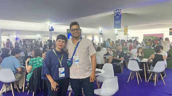 Verônica Villa da Warner Bros. Discovery | HBO e Eudaldo Monção Jr, durante rodadas de negócios do MICBr + Iberoamérica.