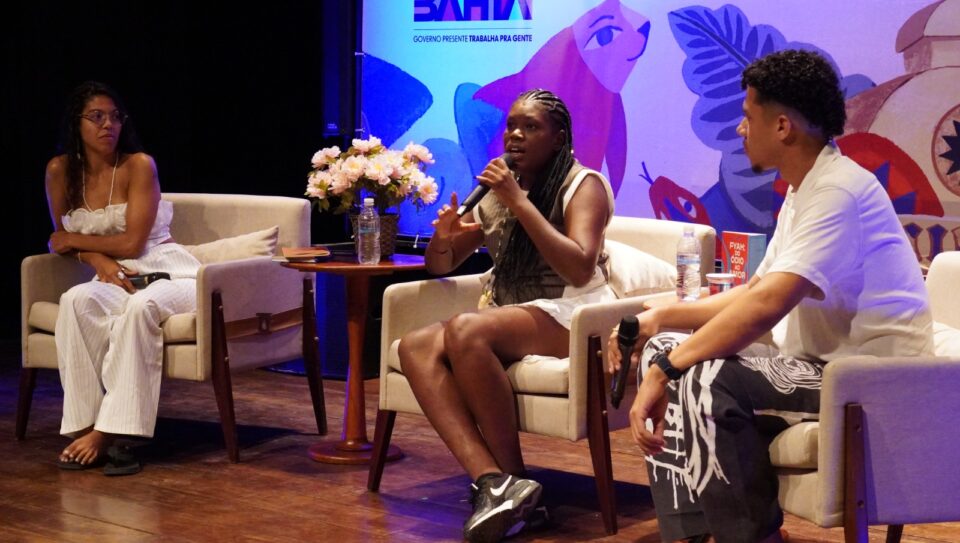 A mesa contou com a participação dos autores NegaFyah, Alice Nascimento e Breno Silva, que se comunicam pela oralidade e cujos trabalhos resultaram na criação de livros, alguns já lançados e outro, o de Breno, ainda previsto para chegar às livrarias. Na mesa, os três autores contaram um pouco do início de suas trajetórias e suas inspirações.
