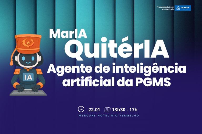 A Procuradoria-Geral do Município de Salvador (PGMS) lança, nesta quinta-feira (22), a partir das 13h30, a sua inteligência artificial institucional, denominada Agente MarIA QuitérIA. O evento será realizado no Mercure Hotel Salvador, no bairro do Rio Vermelho, e contará com a presença do procurador-geral do Município, Eduardo Porto; da subprocuradora-geral, Luciana Harth; do fundador e idealizador da ferramenta MinutaIA e procurador do Município de Belo Horizonte (MG), Caio Perona; além de autoridades, gestores públicos e convidados.