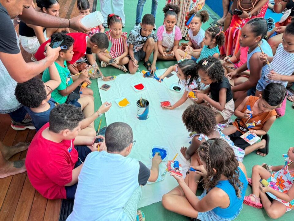 Responsável pela oficina de Estamparia Adinkra, Romário Oliveira ressaltou o valor formativo da atividade. “Trabalhamos aqui a importância da simbologia africana, especialmente do sistema adinkra, ligado ao povo Akan, de Gana. São símbolos que carregam filosofia, valores e ensinamentos sobre respeito, convivência e diversidade racial. Trazer isso para as crianças, de forma lúdica, é fundamental, seja na educação escolar ou não formal. Projetos como este, no Mundo Encantado da Criança, nos permitem explorar e ensinar essa herança de maneira viva e significativa”, destacou.