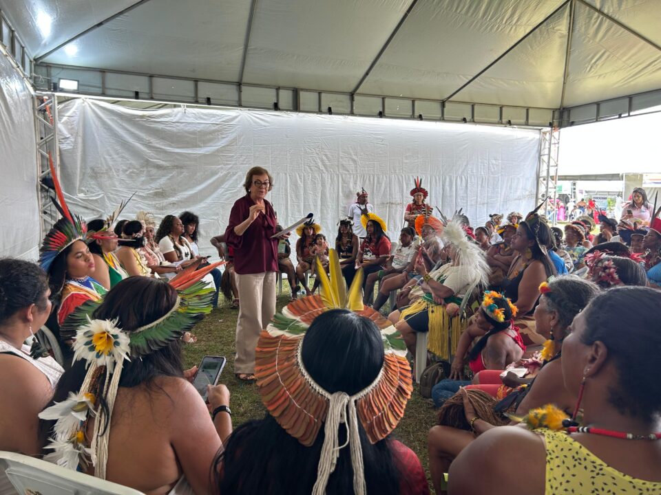 Durante o acampamento, a secretária estadual das Mulheres, Neusa Cadore, participou da Plenária de Políticas Públicas Voltadas às Mulheres, que reuniu lideranças femininas indígenas e representantes do governo estadual para discutir propostas de proteção, empoderamento e liderança feminina indígena.